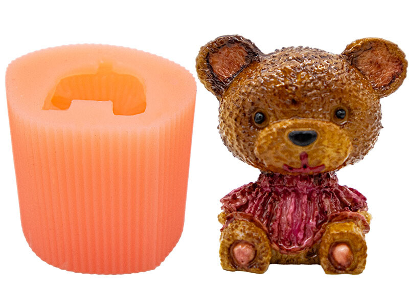 Süslü Oturan Ayıcık Silikon Mum Kalıbı M-283